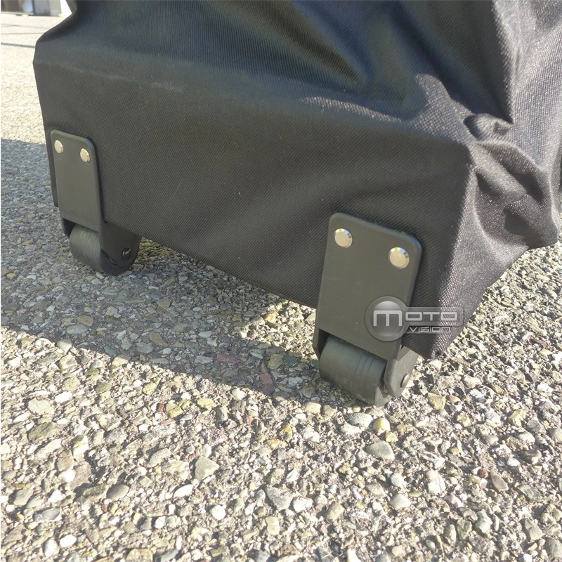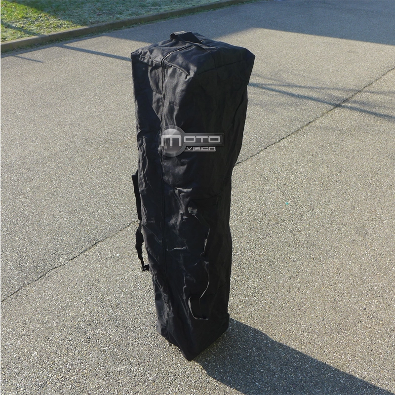 The bag fits perfectly with the tent sold in our Moto Vision online catalogue. The cover of our special paddock tent is made of durable polyester with heavy PVC reinforcement. It is waterproof, UV resistant, stain resistant and washable at any time!