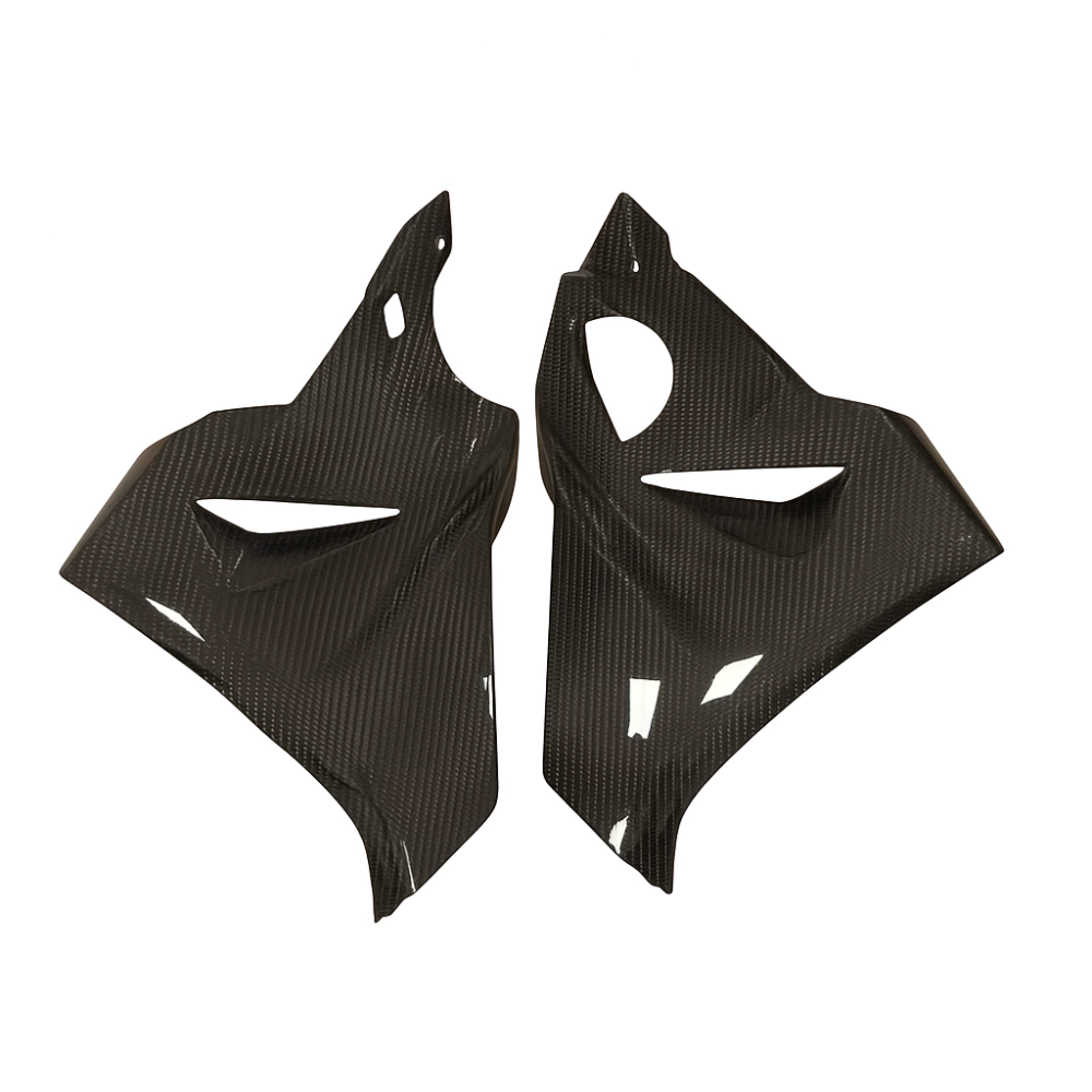 Side panels carbon Ducati Panigale V2 2025-2026, delivered without fasteners. Pre‑drilled holes on the carbon parts.