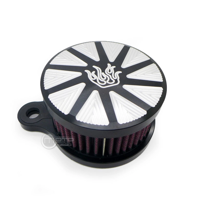 Equip your Harley with this magnificent high performance Moto Vision air filter for Harley Davidson Sportster 1991-2013. The Venturi air filter features a 5-leg design, including a fine mesh screen. This significantly improves air intake and increases power by more than 10%.