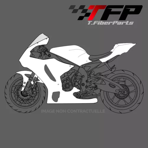 Fiberglass Complet fairing kit TFP Yamaha R6 2003-2004 with two layers of fibreglass mat and a braided finish. An ideal motorbike poly in place of your original fairing to equip your bike for the track at the best price. The TFP fairing has Kevlar reinforcements at the junction and attachment points. Delivered without fixing kit.