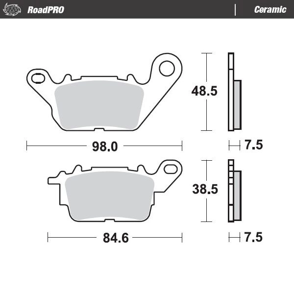 Moto-Master Ceramic road brake pads 7.5 mm 412904 are designed for durable, consistent braking. The Ceramic compound provides good lever feel and even wear.