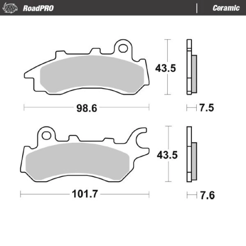 Moto-Master Ceramic road brake pads 7.5 mm 413604 are designed for durable, consistent braking. The Ceramic compound provides good lever feel and even wear.