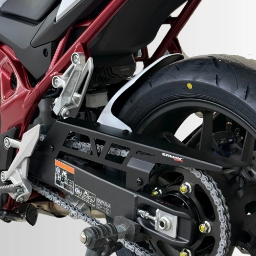 Rear mudguard (+ anodised aluminium chain guard) Ermax CB 750 HORNET 2025-2026 made in France, in thermoformed ABS, according to your original fairing. The thickness and strength of the fairings remain the same without increasing the weight. The inner fixing lugs are directly integrated into the mould of the part, which guarantees a good position and an ideal hold.