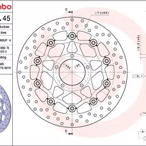 The Brembo Serie Oro motorcycle brake discs are manufactured with a specific drilling pattern for better heat dissipation. Brembo's extensive experience has made it possible to define the most suitable geometries, tolerances and dimensions for each type of motorcycle and usage.