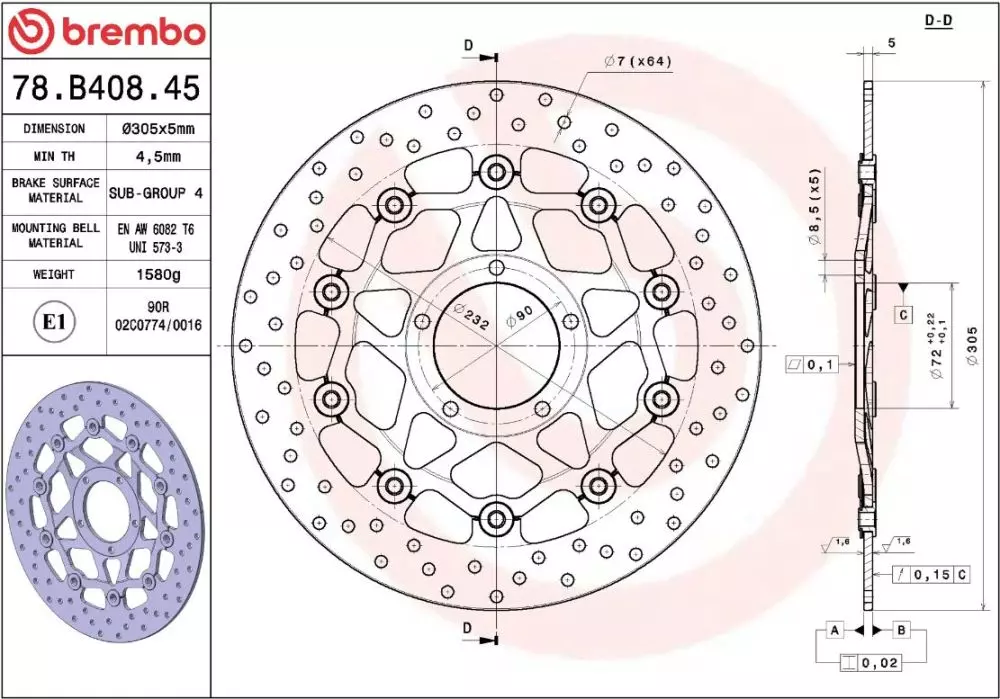 Brembo floating brake disc PRIME Serie Oro 78B40845 that meets or exceeds OE fit, form and function specifications. With Brembo, your braking is reliable in all conditions!