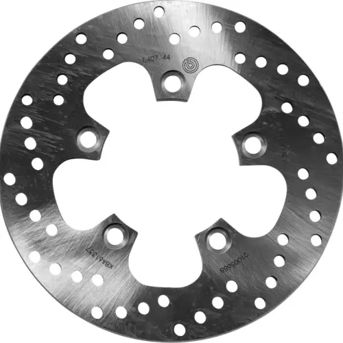 Brembo Serie Oro motorcycle brake discs are manufactured with a specific drilling pattern for improved heat dissipation. Brembo's extensive experience has made it possible to define the most suitable geometries, tolerances, and dimensions for each type of motorcycle and use.