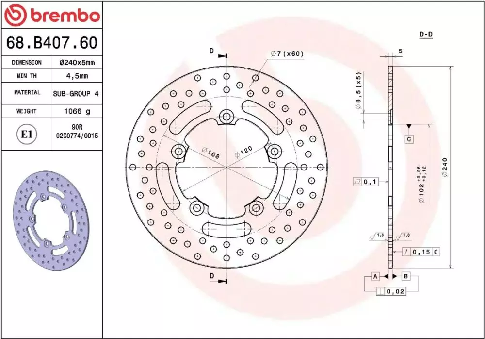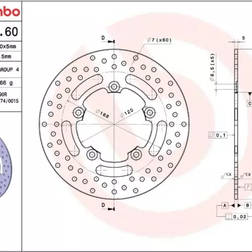 Technical specifications of the Brembo 68B40760 brake disc
