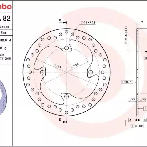 Technical specifications of the Brembo 68B40782 brake disc