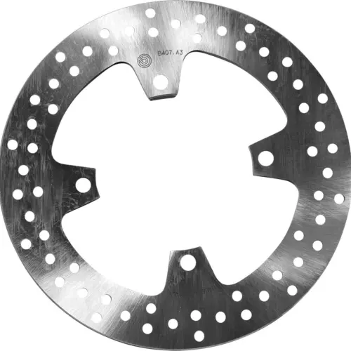 Brembo Serie Oro motorcycle brake discs are manufactured with a specific drilling pattern for improved heat dissipation. Brembo's extensive experience has made it possible to define the most suitable geometries, tolerances, and dimensions for each type of motorcycle and use.