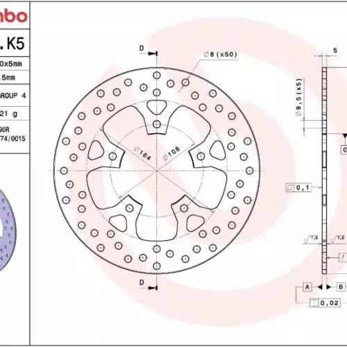 Brembo Serie Oro motorcycle brake discs are manufactured with a specific drilling pattern for improved heat dissipation. Brembo's extensive experience has made it possible to define the most suitable geometries, tolerances, and dimensions for each type of motorcycle and use.