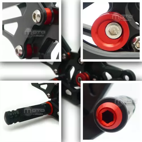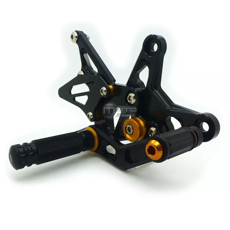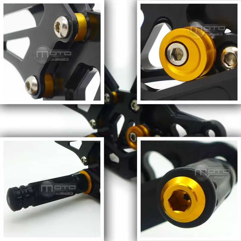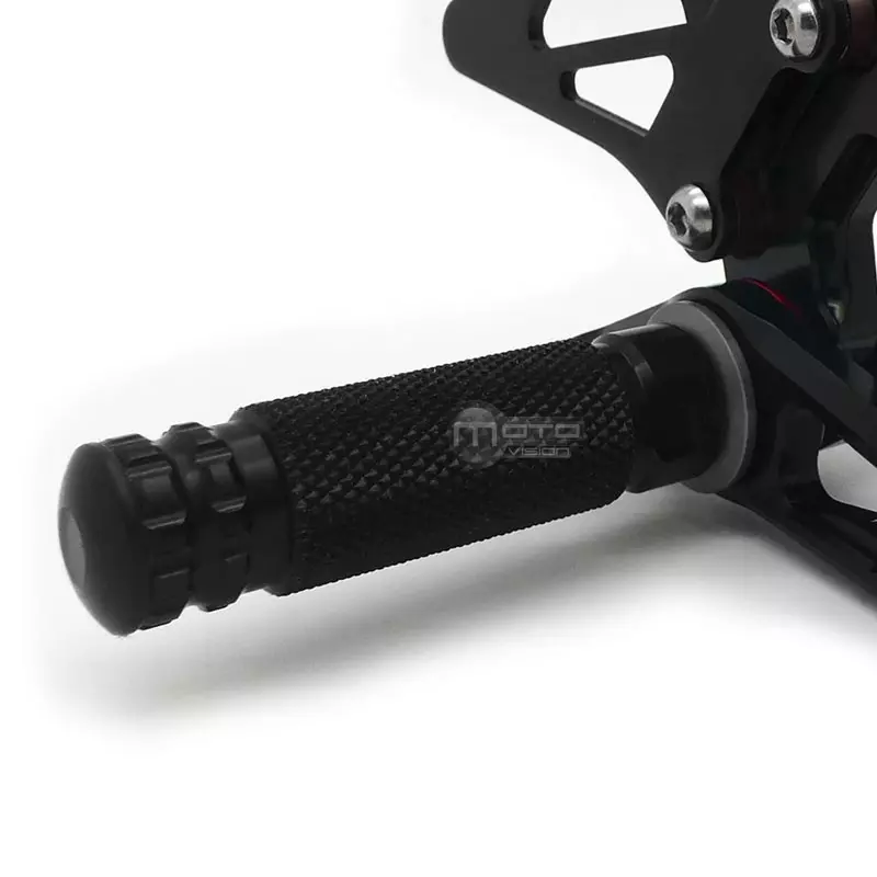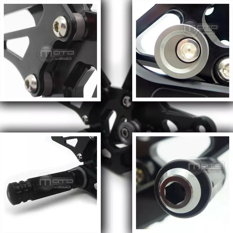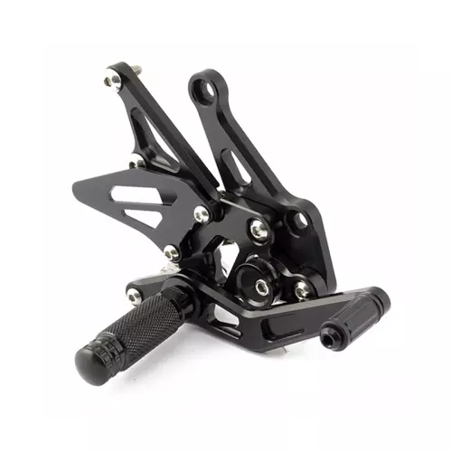 The CNC Rearset Kawasaki Z1000 2014- have an individually adjustable lever with 8 to 10 settings depending on the model and plates with a matt black anodised finish. They have 2 positions for the shifter/brake pedal.