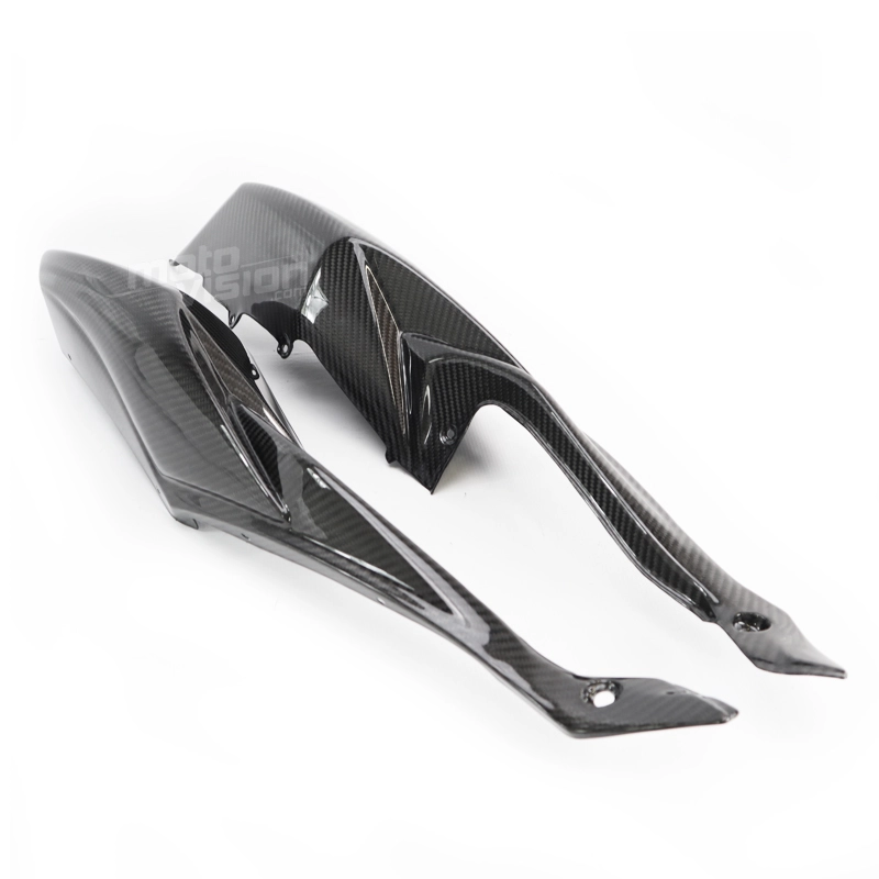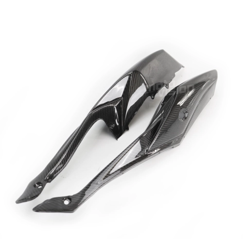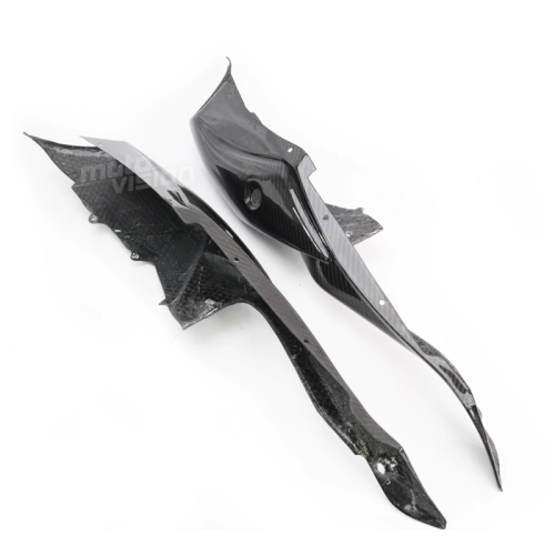 Carenados laterales colín carbono Suzuki GSXR 600 750 2008-2010, se entrega sin tornillos ni otras fijaciones. Los agujeros ya están perforados en los carenados de carbono de las motos. Las piezas están disponibles en barniz brillante o mate.