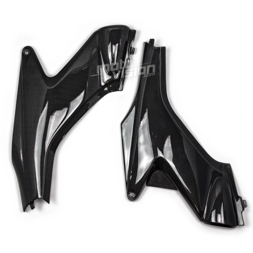 Carenados laterales en carbono Honda Hornet 600 2004-2006 que se monta directamente en los puntos de fijación originales de su moto para sustituir el carenado original. Las piezas de carbono se entregan sin tornillos ni pernos.