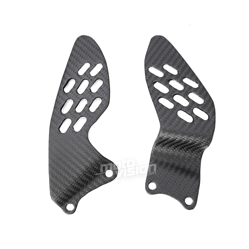 Reposapiés en carbono Yamaha R1 2004-2006, se entrega sin tornillos ni otras fijaciones. Los agujeros ya están perforados en los carenados de carbono de las motos. Las piezas están disponibles en barniz brillante o mate.