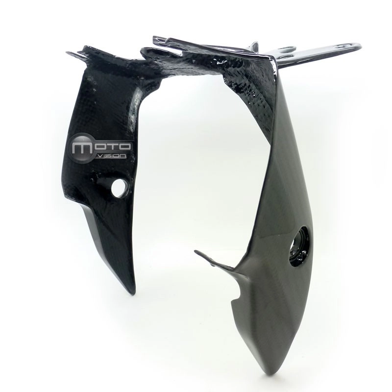 Araña en carbono MV Agusta B3 y Dragster, se entrega sin tornillos ni otras fijaciones. Los agujeros ya están perforados en los carenados de carbono de las motos. Las piezas están disponibles en barniz brillante o mate.