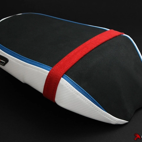 Fundas de Asientos Couvre selle pour passager Suzuki GSXR 1000 09-13 Luimoto de alta calidad, fabricada en Canadá. La marca diseña productos con un magnífico acabado: bordados detallados, vinilo azul marino, tejido estilo carbón o cuero de ante de alta calidad... El diseño y los colores se personalizan para que se adapten al aspecto de tu moto.