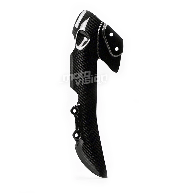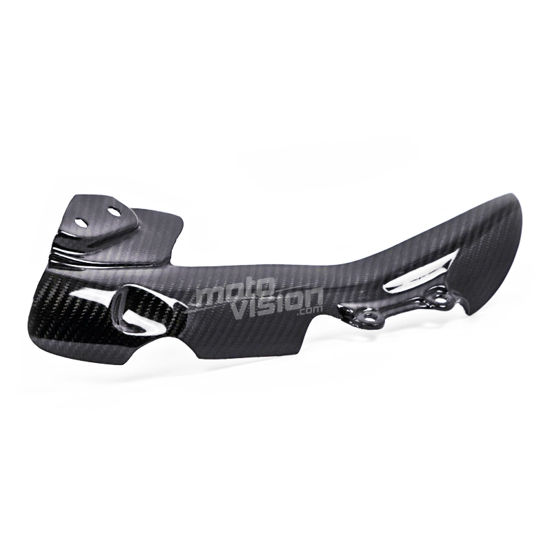 Protector colector escape en carbono Yamaha R1 2004-2006, se entrega sin tornillos ni otras fijaciones. Los agujeros ya están perforados en los carenados de carbono de las motos. Las piezas están disponibles en barniz brillante o mate.