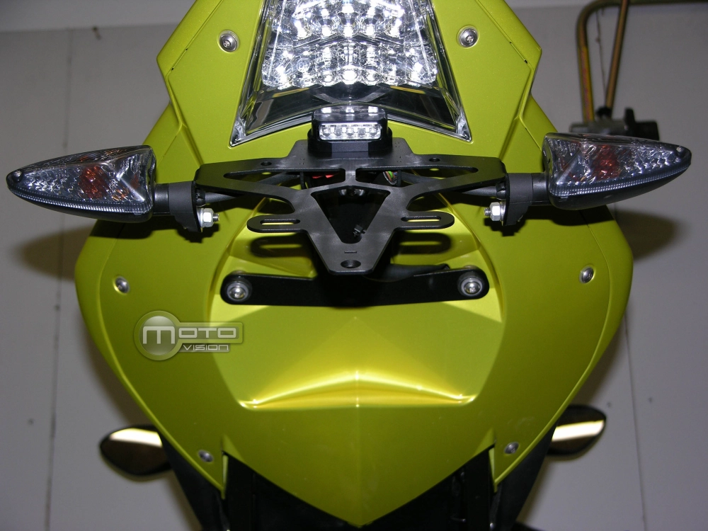 Soporte de matricula en aluminio regulable. Incluye adaptador para cada moto, tornillería y fijaciones.