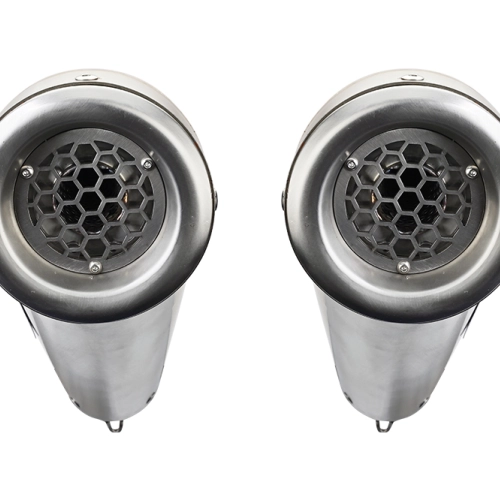 Los escapes Powercone Evo de GPR son directamente de las carreras con un aspecto súper deportivo. y forma de cono. Están fabricados en acero inoxidable 304 cepillado a mano, con soldaduras TIG visibles en el cono. Su forma de cono tiene un diámetro de 70MM x 110MM. Este kit incluye el tubo lnik o medio colector específico con soportes y accesorios específicos. Esto permite la instalación sin modificaciones estructurales. Este es un producto GPR original, desarrollado después de la experiencia de GPR en el Campeonato Mundial. Ofrece un diseño innovador, rendimiento mejorado, ahorro de peso y un sonido con mucho cuerpo.Peso: 1,95 Kg