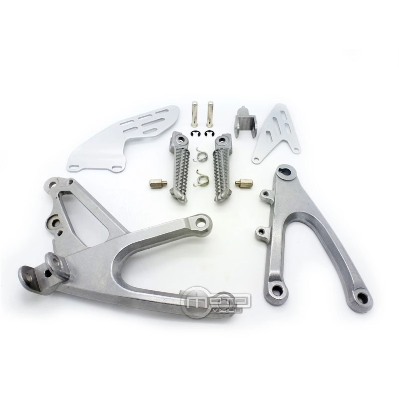 El Kit contiene las estriberas en aluminio y los adaptadores necesarios para cada modelo de moto.