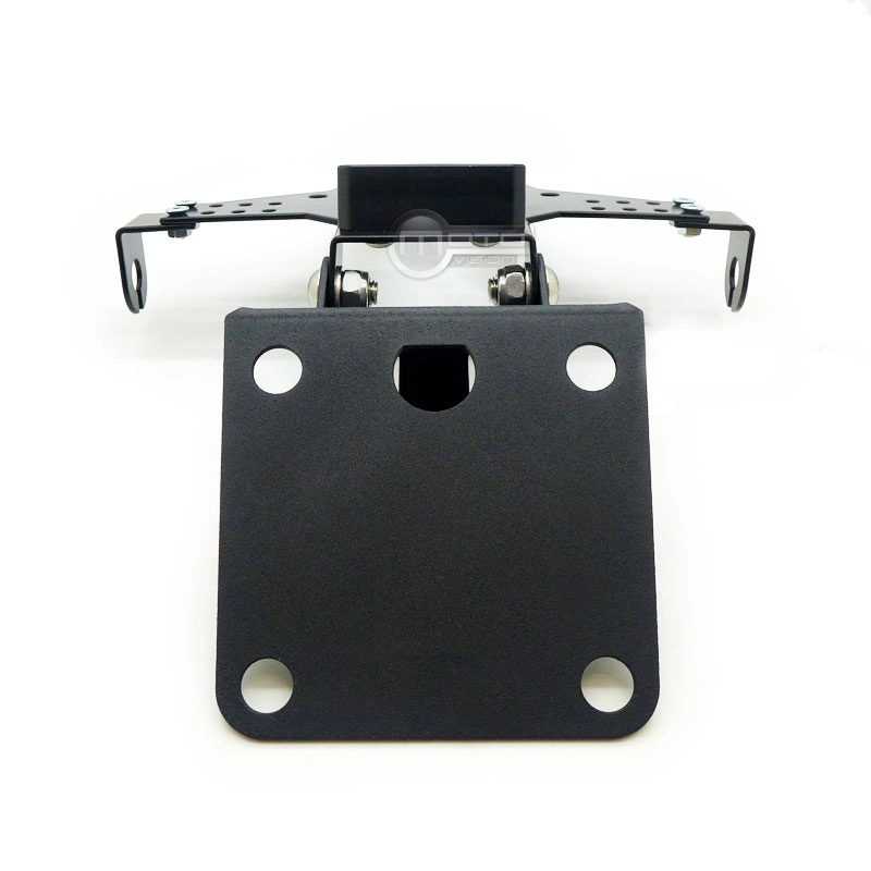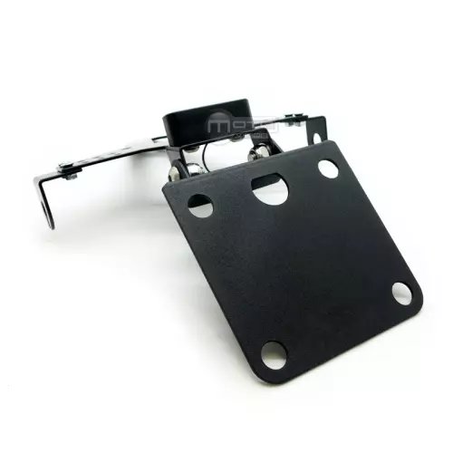 Soporte de matricula en aluminio regulable. Incluye adaptador para cada moto, tornillería y fijaciones.