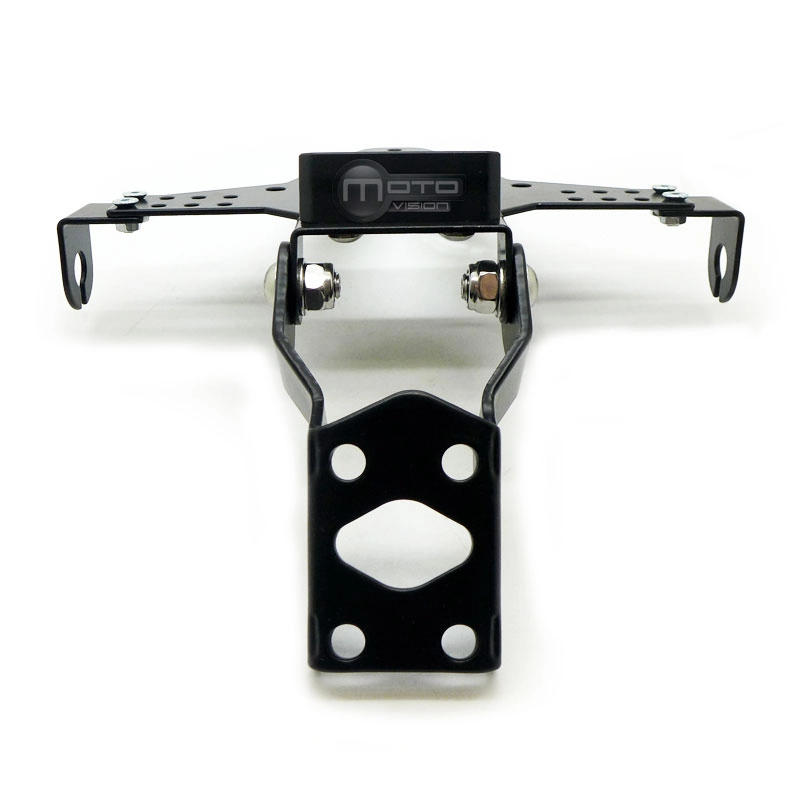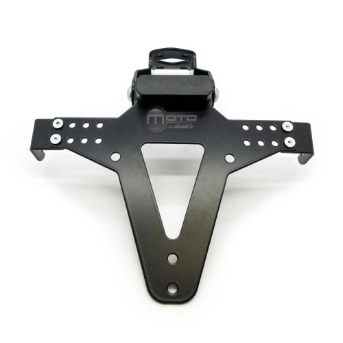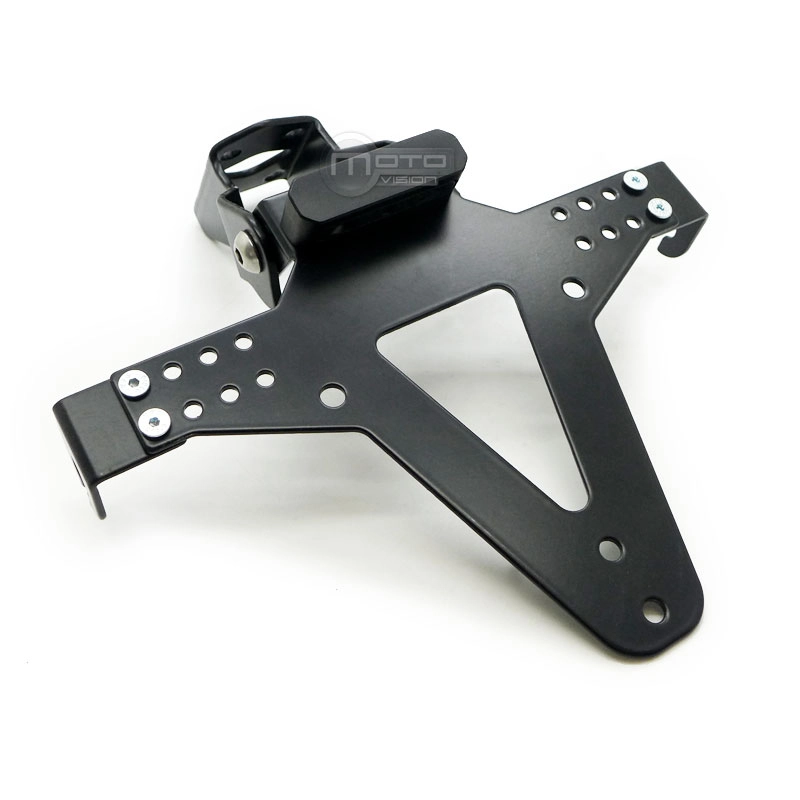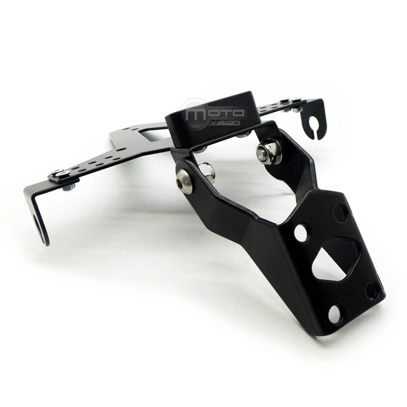 Soporte de matricula en aluminio regulable. Incluye adaptador para cada moto, tornillería y fijaciones.
