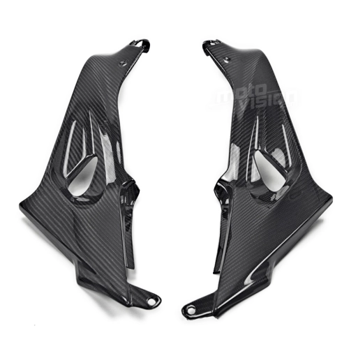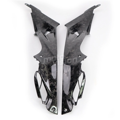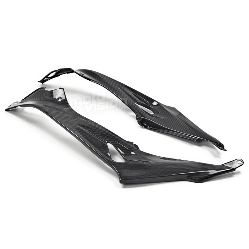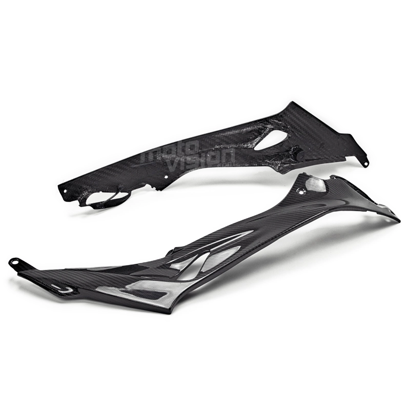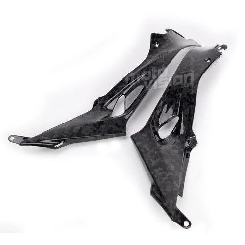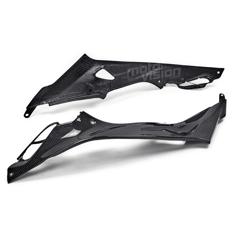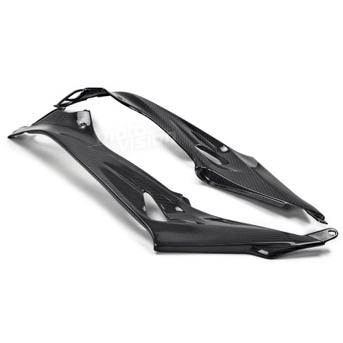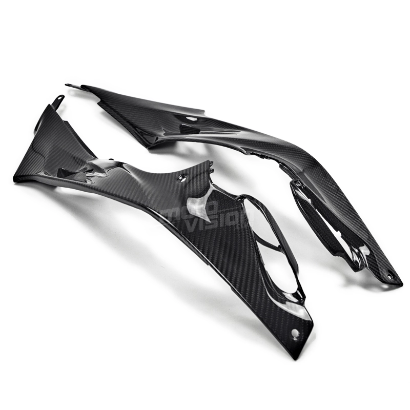Tapas inferiores deposito en carbono BMW S1000 R, se entrega sin tornillos ni otras fijaciones. Los agujeros ya están perforados en los carenados de carbono de las motos. Las piezas están disponibles en barniz brillante o mate.