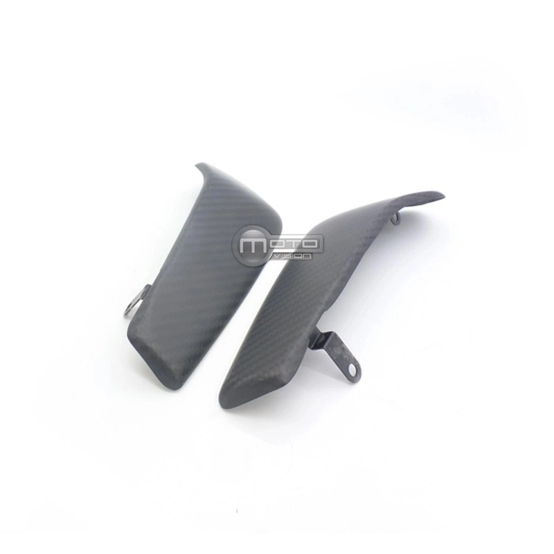 Cache sur écope radiateur carbone Ducati Monster 821 1200 2014-2020, se entrega sin tornillos ni otras fijaciones. Los agujeros ya están perforados en los carenados de carbono de las motos. Las piezas están disponibles en barniz brillante o mate.