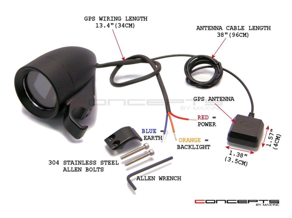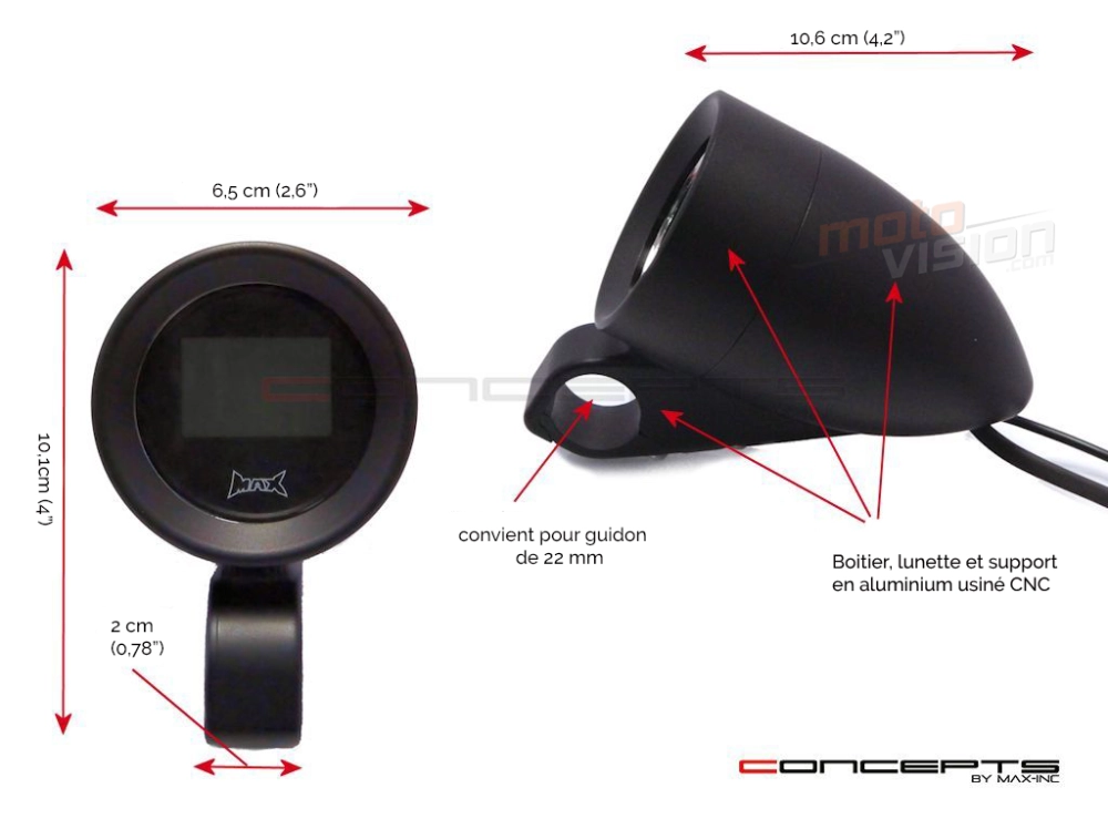 Medidor GPS digital Max Inc® 100% resistente al agua, Manillares de 22 mm