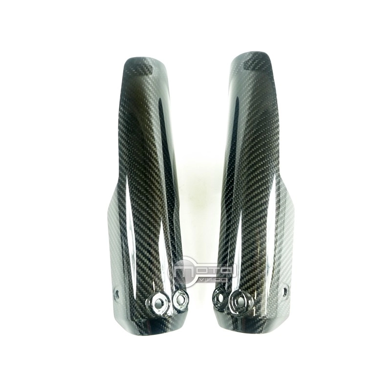 Protección del amortiguador en carbono brillante Ducati Scrambler 2017, se entrega sin tornillos ni otras fijaciones. Los agujeros ya están perforados en los carenados de carbono de las motos. Las piezas están disponibles en barniz brillante o mate.