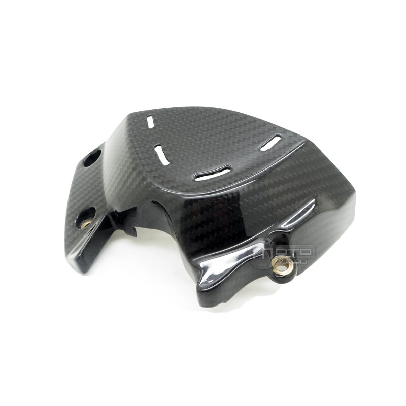 Carbon Sprocket cover Ducati Monster 1200 S/R 2017, se entrega sin tornillos ni otras fijaciones. Los agujeros ya están perforados en los carenados de carbono de las motos. Las piezas están disponibles en barniz brillante o mate.