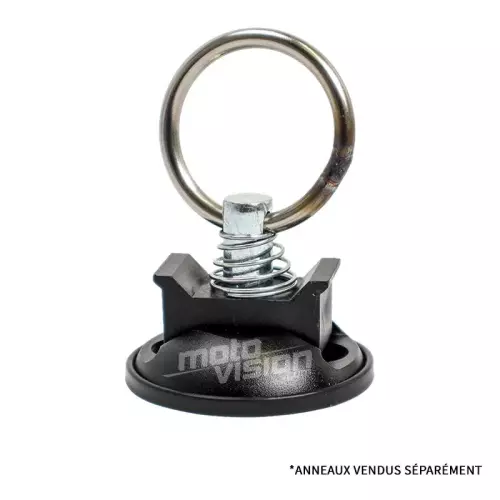 Par de ganchos de amarre redondos para atornillar al suelo de un remolque o vehículo utilitario. Diseñados para proporcionar un punto de anclaje seguro para su moto durante el transporte.