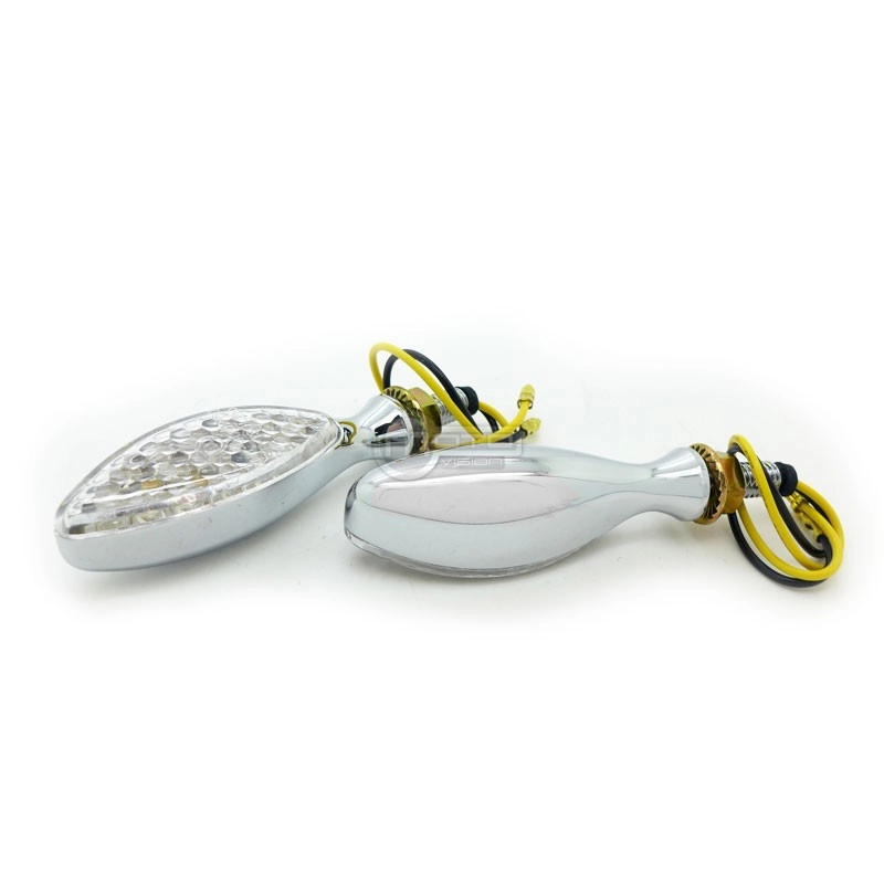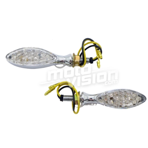 Par de intermitentes LED de acero cromado en forma de lágrima con 25 LED. Universales, pueden montarse en todas las motos.