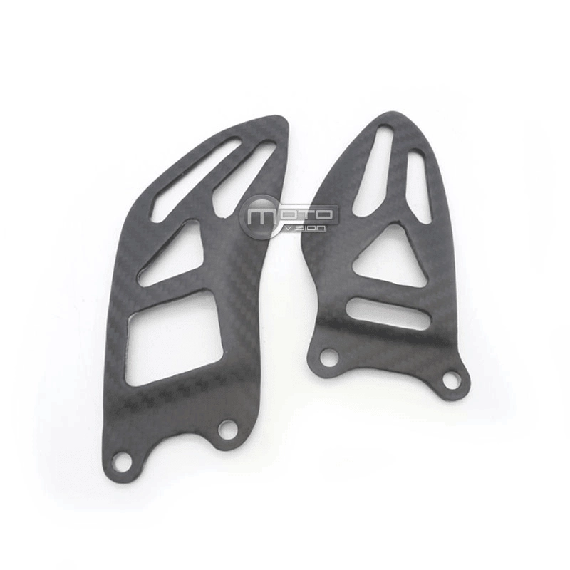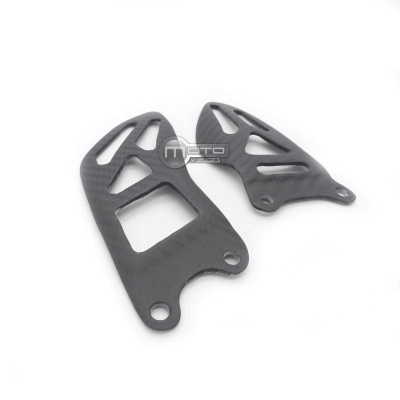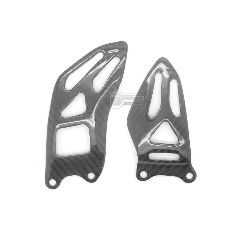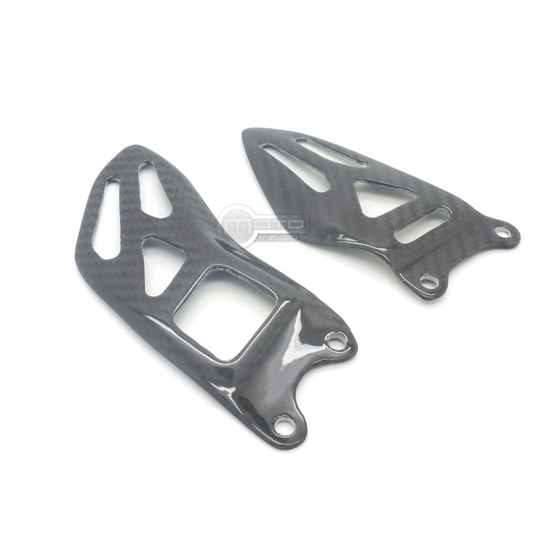 Reposapiés en carbono Suzuki GSXR 1000 2009-13 y 600 750 2011-13, se entrega sin tornillos ni otras fijaciones. Los agujeros ya están perforados en los carenados de carbono de las motos. Las piezas están disponibles en barniz brillante o mate.