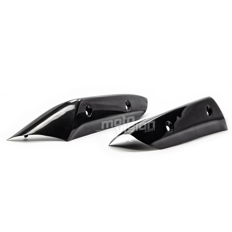 Par de protectores de escape Yamaha YZF R1 2009-2011, se entrega sin tornillos ni otras fijaciones. Los agujeros ya están perforados en los carenados de carbono de las motos. Las piezas están disponibles en barniz brillante o mate.