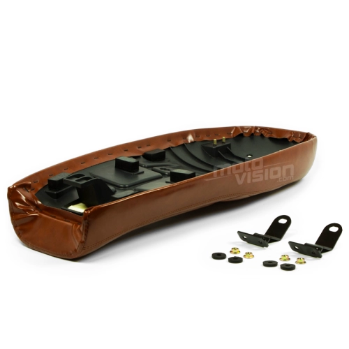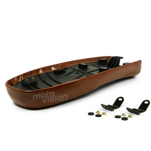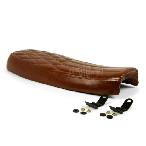 Transforme el aspecto de su bicicleta instalando un sillín con el perfil clásico Café Racer. Cómodo y estéticamente agradable, este producto de imitación de cuero es ideal para sustituir el sillín original.