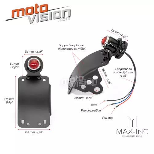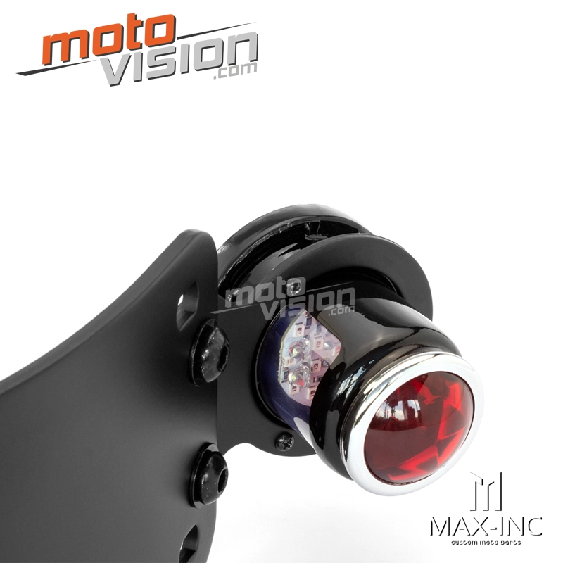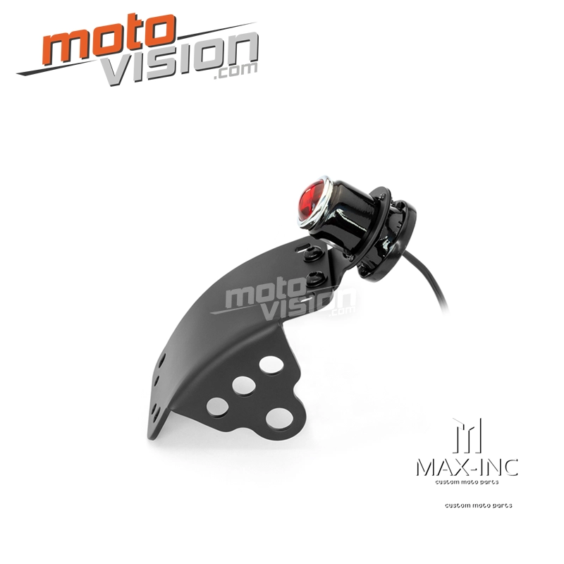 Luz trasera clásica de buena calidad y sólida con soporte de matrícula. El soporte se monta directamente en el eje trasero de su motocicleta y puede ser montado en el lado izquierdo o derecho de la moto simplemente volteando la placa y aflojando las tuercas de la luz y montándola en el lado opuesto de la placa.