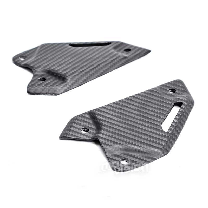 Reposapiés en carbono Kawasaki Z900 2017-2021, se entrega sin tornillos ni otras fijaciones. Los agujeros ya están perforados en los carenados de carbono de las motos. Las piezas están disponibles en barniz brillante o mate.
