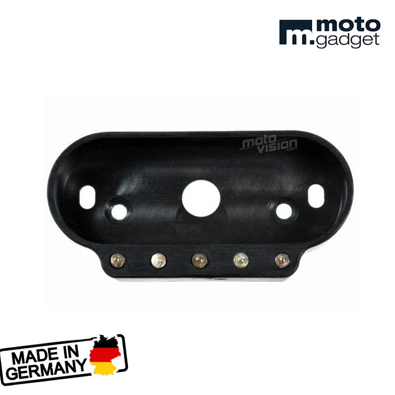 El estuche Motogadget mini combi frame permite montar el Motoscope Mini Motogadget en el manillar de tu moto mediante fijaciones adicionales. Los 5 indicadores luminosos (verde, azul, rojo, naranja) y las prerresistencias ya están integrados.