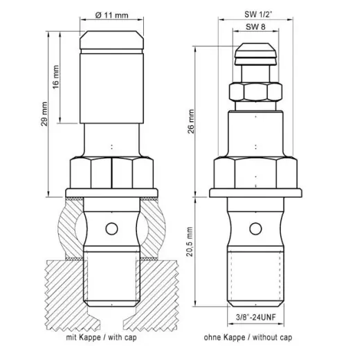 Diseñada con una pieza giratoria CNC de aluminio anodizado y un tornillo de purga integrado en acero niquelado, garantiza un sellado perfecto gracias a sus dos juntas tóricas EPDM (o Viton para aceite hidráulico).