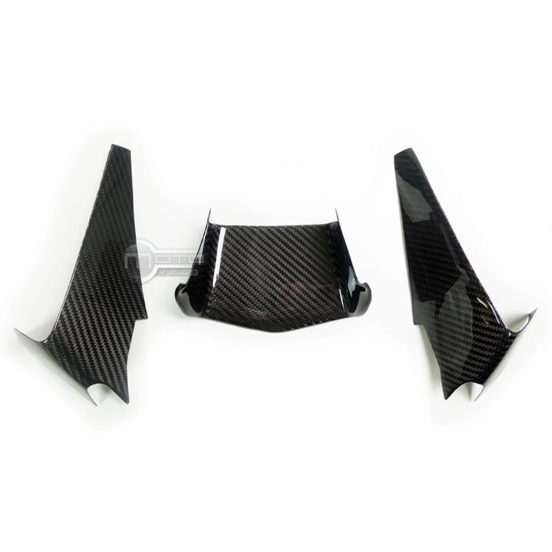 Cubierta sobre canales de aire en carbono Yamaha R1 2015-... que se monta directamente en los puntos de fijación originales de su moto para sustituir el carenado original. Las piezas de carbono se entregan sin tornillos ni pernos.