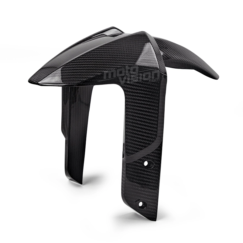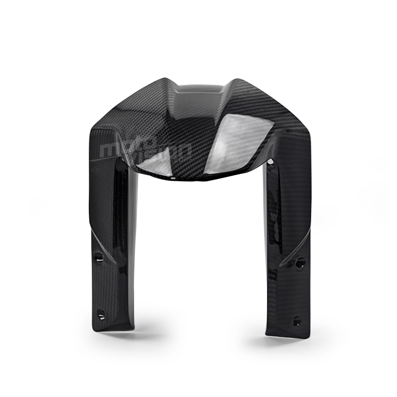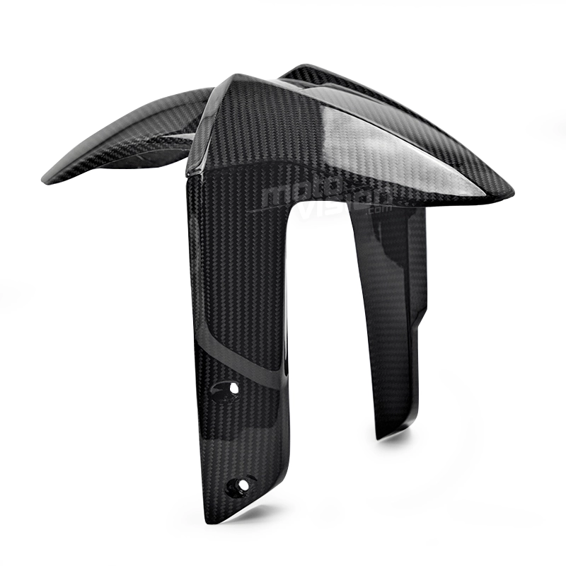 Parafango carbon brillante para KTM Duke 790 2018-2020, se entrega sin tornillos ni otras fijaciones. Los agujeros ya están perforados en los carenados de carbono de las motos. Las piezas están disponibles en barniz brillante o mate.