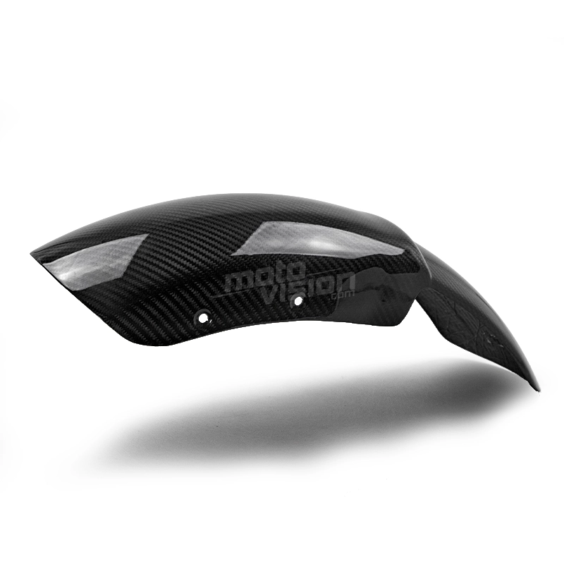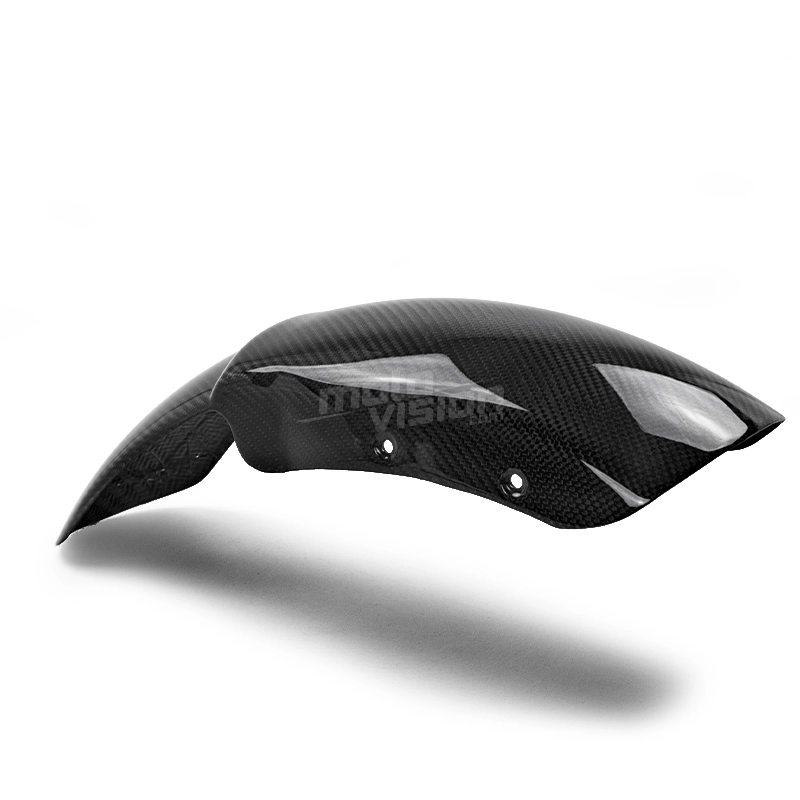 Guardabarros carbono brillante para Harley Davidson VRSCF V-Rod Muscle, se entrega sin tornillos ni otras fijaciones. Los agujeros ya están perforados en los carenados de carbono de las motos. Las piezas están disponibles en barniz brillante o mate.