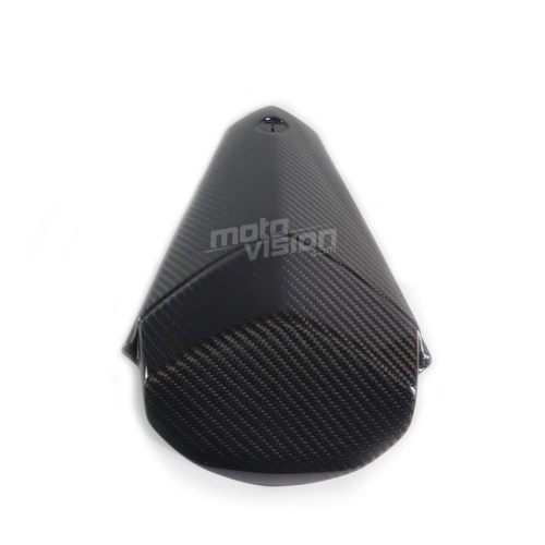 Cover tampone sella carbono brillante para Yamaha YZF-R6 2017-2019, se entrega sin tornillos ni otras fijaciones. Los agujeros ya están perforados en los carenados de carbono de las motos. Las piezas están disponibles en barniz brillante o mate.
