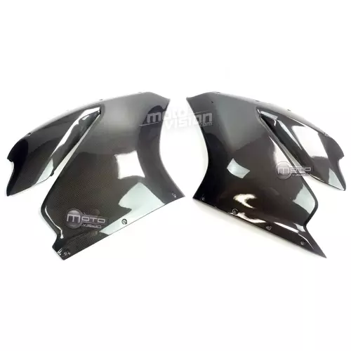 Carenado laterales en carbono brillante Ducati 1299 Panigale, se entrega sin tornillos ni otras fijaciones. Los agujeros ya están perforados en los carenados de carbono de las motos. Las piezas están disponibles en barniz brillante o mate.