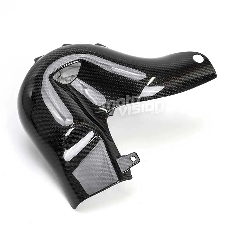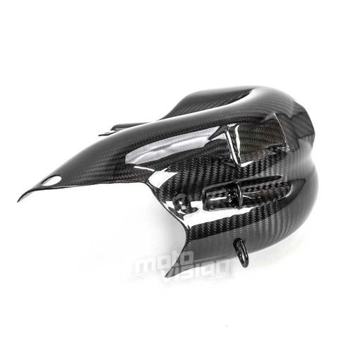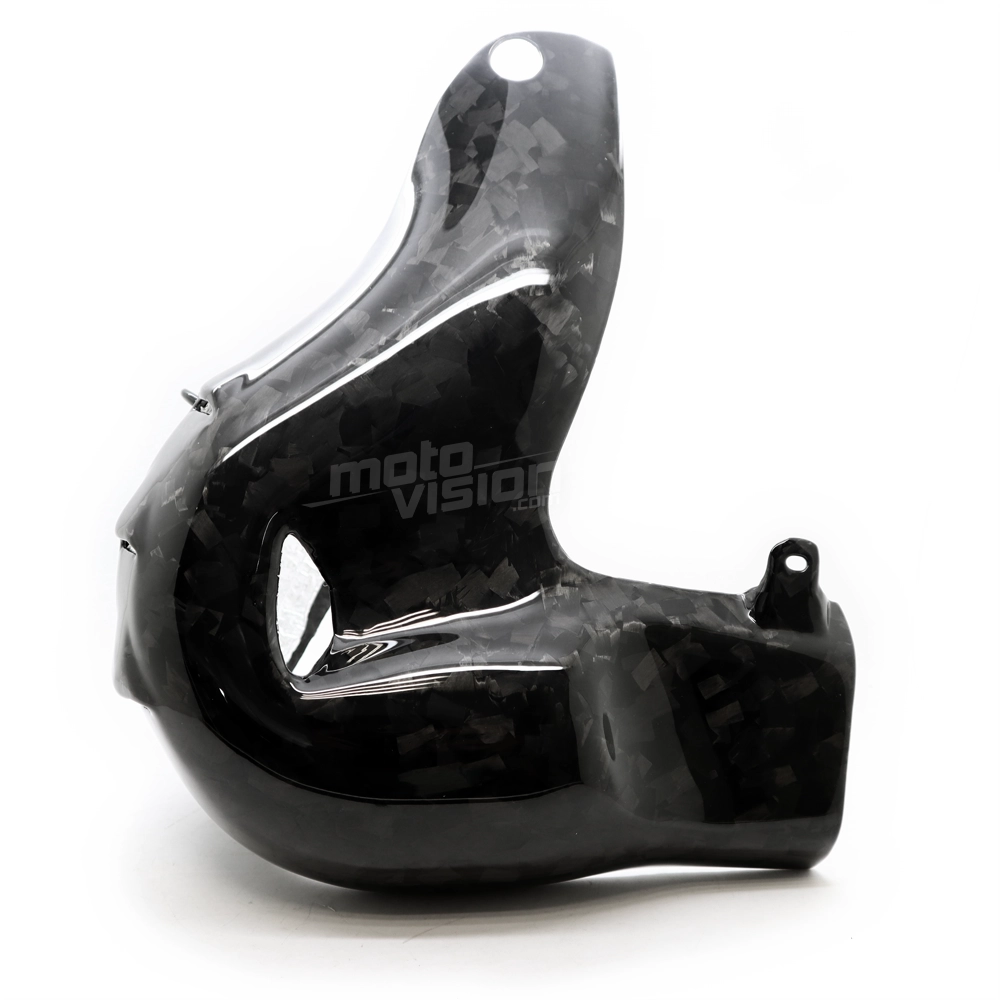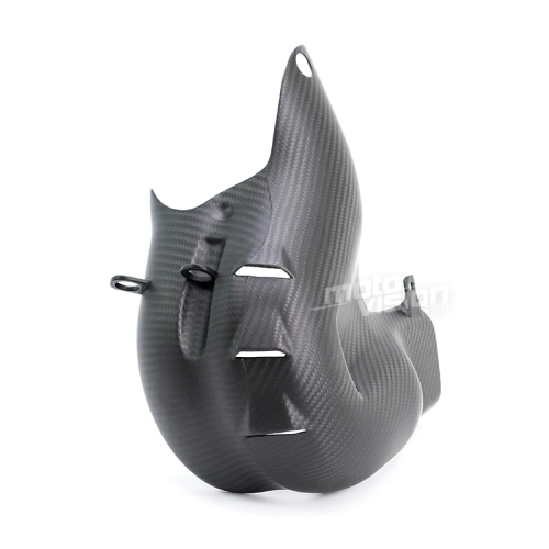 Protector de colector de escape en carbono Ducati Streetfighter V4 V4S, se entrega sin tornillos ni otras fijaciones. Los agujeros ya están perforados en los carenados de carbono de las motos. Las piezas están disponibles en barniz brillante o mate.