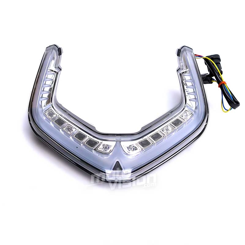 Luz trasera LED transparente con intermitentes integrados Ducati Panigale V4 V4S 2018-2021 como reemplazo de tu luz original. Puede prescindir de la a menudo antiestética aleta trasera con este piloto trasero LED con intermitentes integrados. Es una réplica exacta de la luz original, por lo que el montaje es muy sencillo.