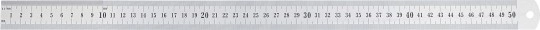 - parte frontal con escala métrica y pulgadas en la parte trasera