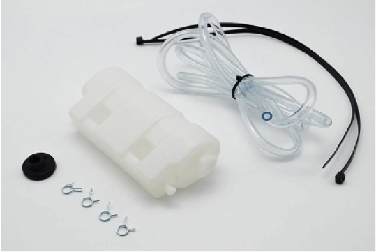 Overflow bottle with hose and mounting kit, capacity 250 ml, necessary for race fairing.