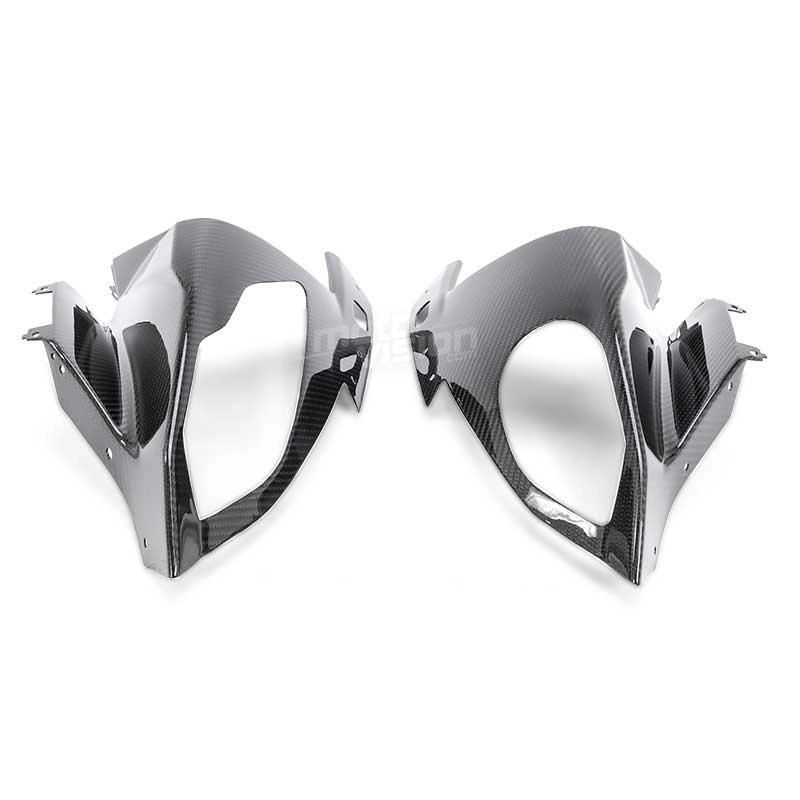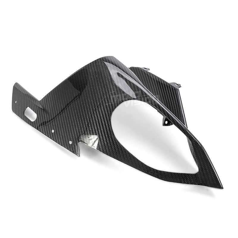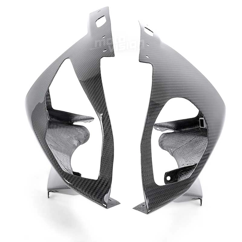 Protector de faros carbonio luminoso BMW S1000RR 2015 - 2018, se entrega sin tornillos ni otras fijaciones. Los agujeros ya están perforados en los carenados de carbono de las motos. Las piezas están disponibles en barniz brillante o mate.